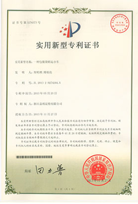 • 一種包裝袋轉運小車實用新型專利證書